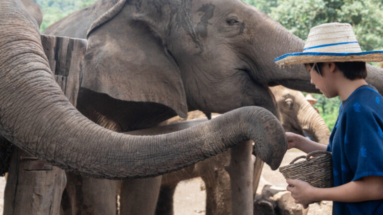 Elephant Feeding Program in Mae Taeng near Omkoi. Get a glimpse of what it’s like to live with an elephant. you will feed, hike, and learn about elephants in Thailand.
